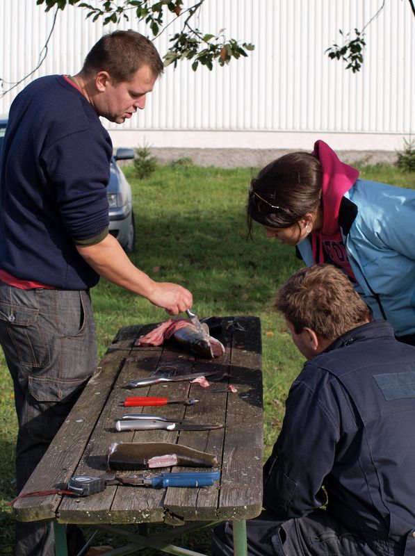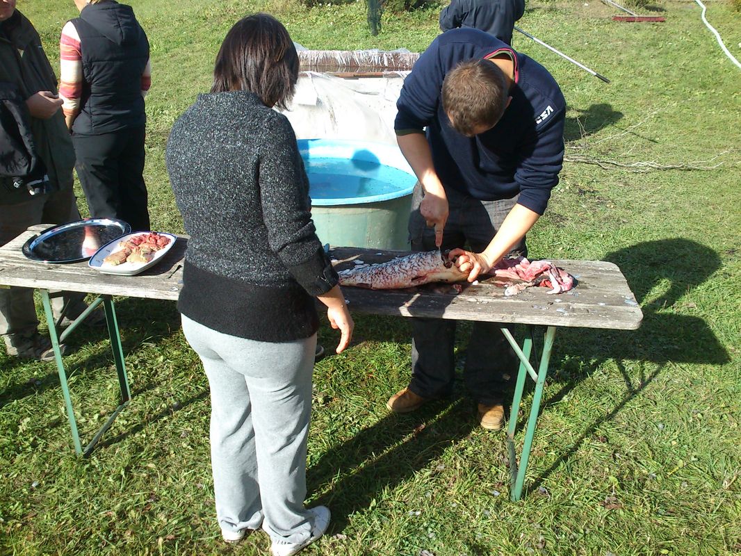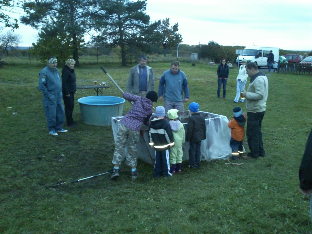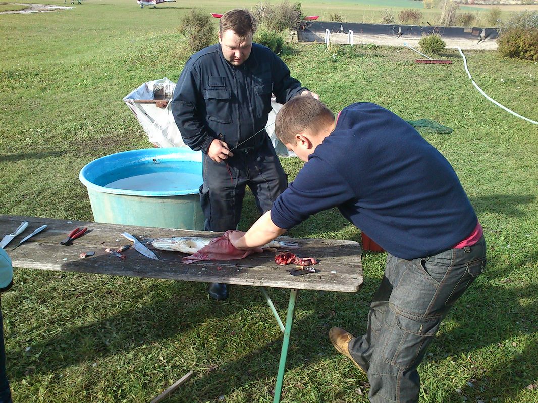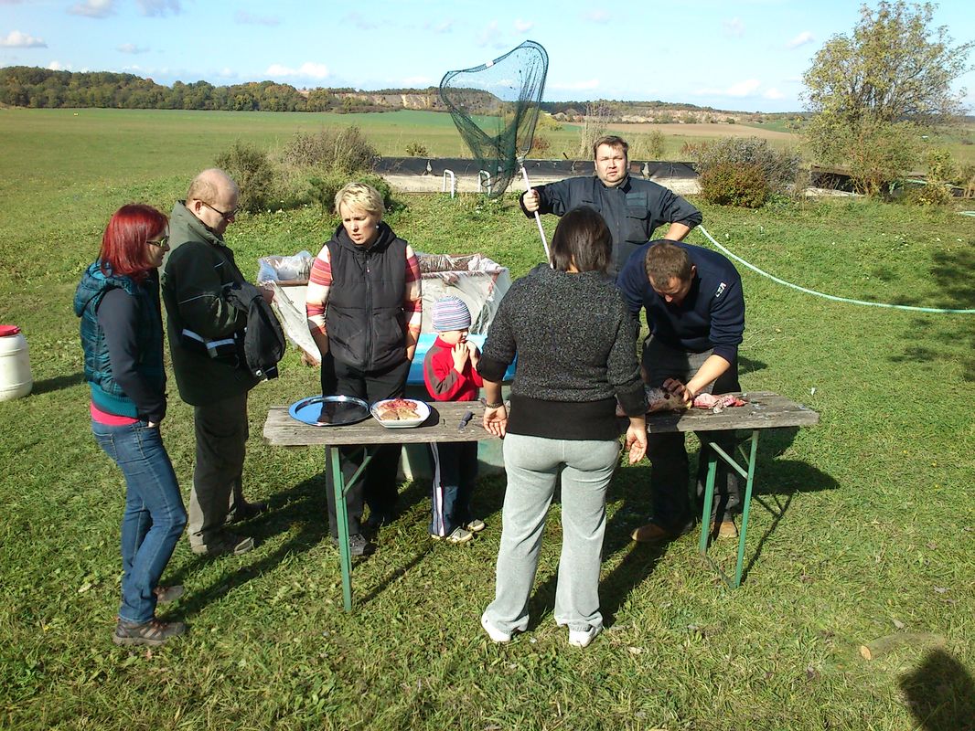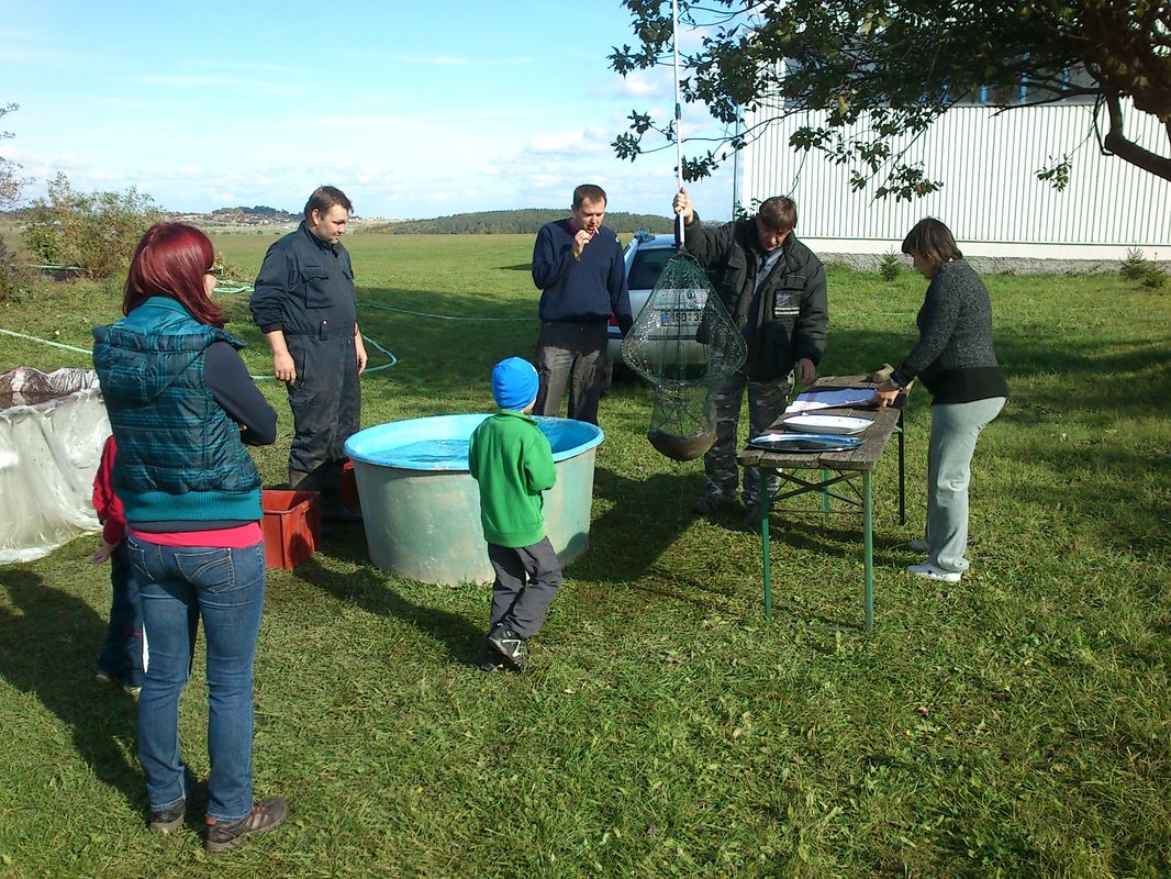 Když byly kádě plné a náklaďáky rozvezly většinu úlovku do celé republiky i zahraničí, dali jsme si zasloužený teplý gulášek od bratra porybného Romana. Mokré a pocákané děti stály s otevřenou pusou na břehu v kamenném úžasu ze zážitků, které se jim na věky vryly do paměti. My kamarádi z AK jsme si odpoledne v naší kuchyňce připravili a holky pak usmažily jednoho kapra,štiku a lína. Fantastická chuť ryb, pivo a dobrá nálada pomohla odvát únavu z dřiny z prvního výlovu ryb na letišti. Už teď se těšíme na další!