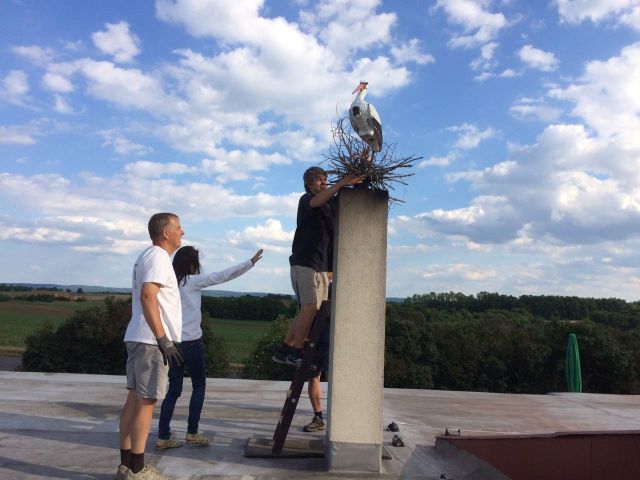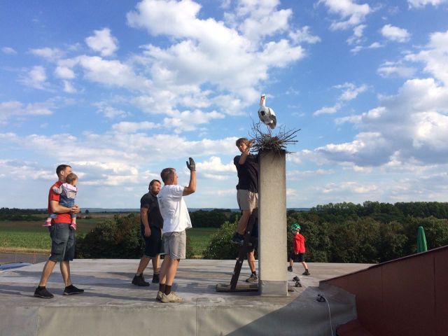 Zahájení sezóny se nám letos trochu protáhlo. Zatímco nový pytel – neklamný příznak nastupujícího jara – se na bubovickém letišti objevil už 29. dubna, hned po příjezdu s hosínského soustředění, čáp přistál na komíně až o celých šest týdnů později. Navíc je inovativně umístěn tak, aby koukal směrem na plochu. Uvidíme, jestli to bude mít na sezónu příznivý vliv.