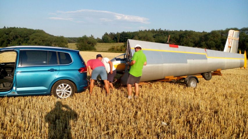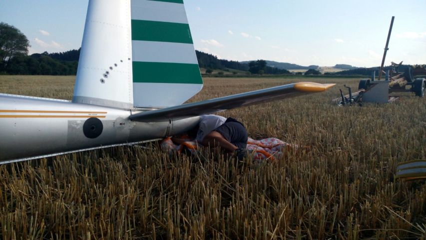 - Dvoučlenná posádka Doněk-Havelka, která si na Den upálení mistra Jana Husa své nouzové přistání do čerstvě sklizeného pole vyloženě užila (viz přiložené fotografie).