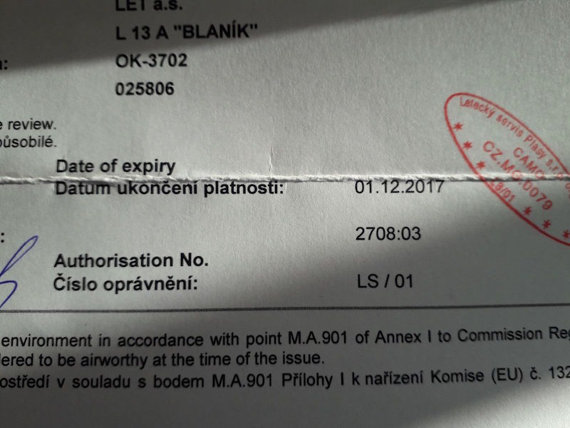 Přes veškerou přípravu se ale nakonec OK-3702 ale do vzduchu dostat nepodařilo. David Veselý během pečlivé předletové prohlídky zjistil, že mu platnost osvědčení letové způsobilosti vypršela včera.