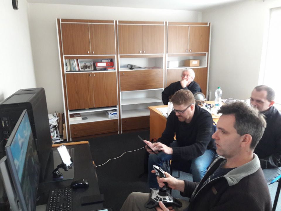 Po nešťastném úrazu a dlouhé době rekonvalescence nás na letišti navštívil čestný člen aeroklubu, ak. arch. Toník Kryl - jako vždy plný elánu. Dokonce se zapojil i do školení softwaru XC Soar, které pro zájemce připravil Honza Liška.
