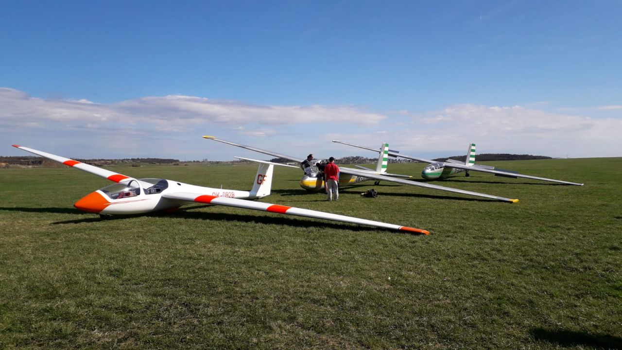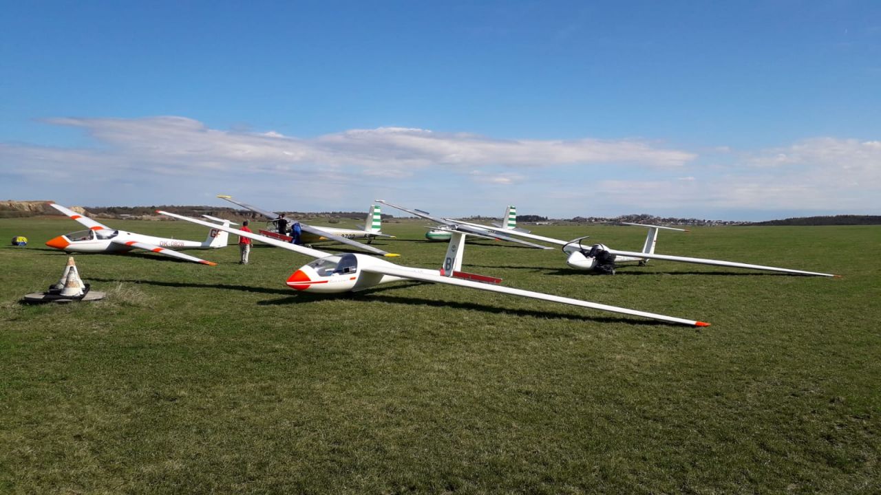 Téměř kompletní letový park a příznivé, skoro letní počasí přilákaly na letiště o tomto víkendu snad všechny členy aeroklubu.