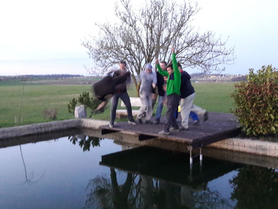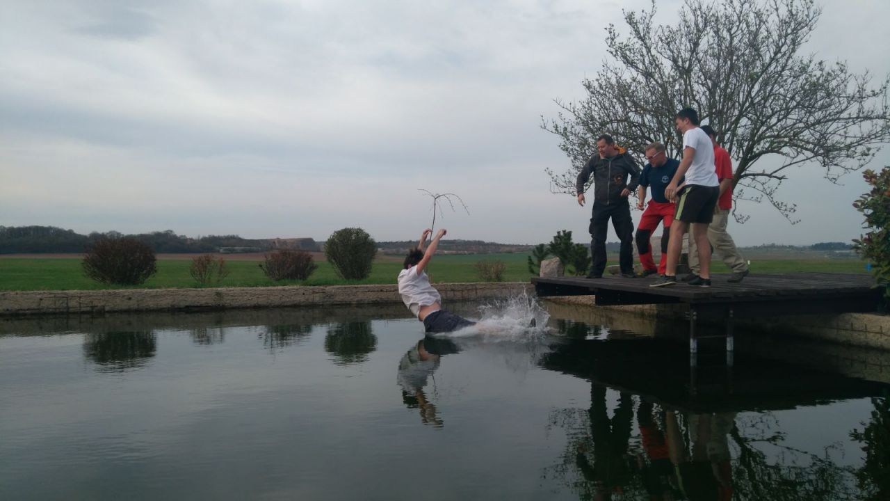 V neděli nám štěstí přálo o něco méně: Prasklá pojistka na navijáku vyrobila v plechu OK-3702 nepříjemný šrám. Během pár minut ale Zdenda Novák škody zručně zahladil. A večerní seznamovák-bazén byl přichystán tentokrát pro Lukáše.