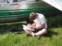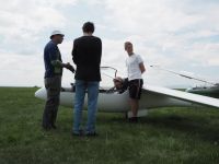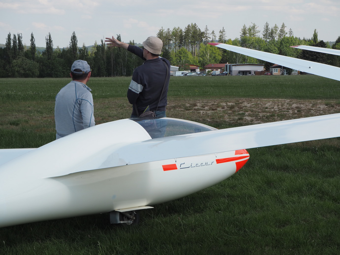 A když bylo konečně kolem jedné všechno ve vzduchu, kumuly se poslušně rovnaly v dlouhé optimistické řady – jen aby během další hodiny vytvořily jednolitou oblačnost, takže jsme měli během chvíle všechna letadla – včetně Matějova Discuse, který nakonec otočil Klatovy a nasbíral tak nějakých 150 km – zase na zemi.