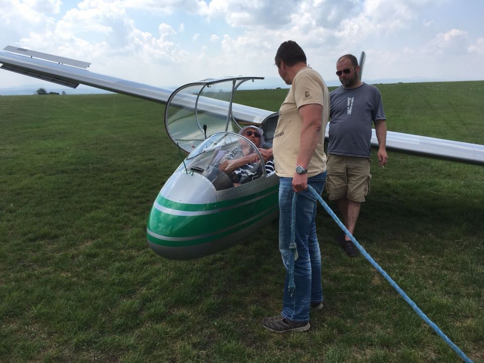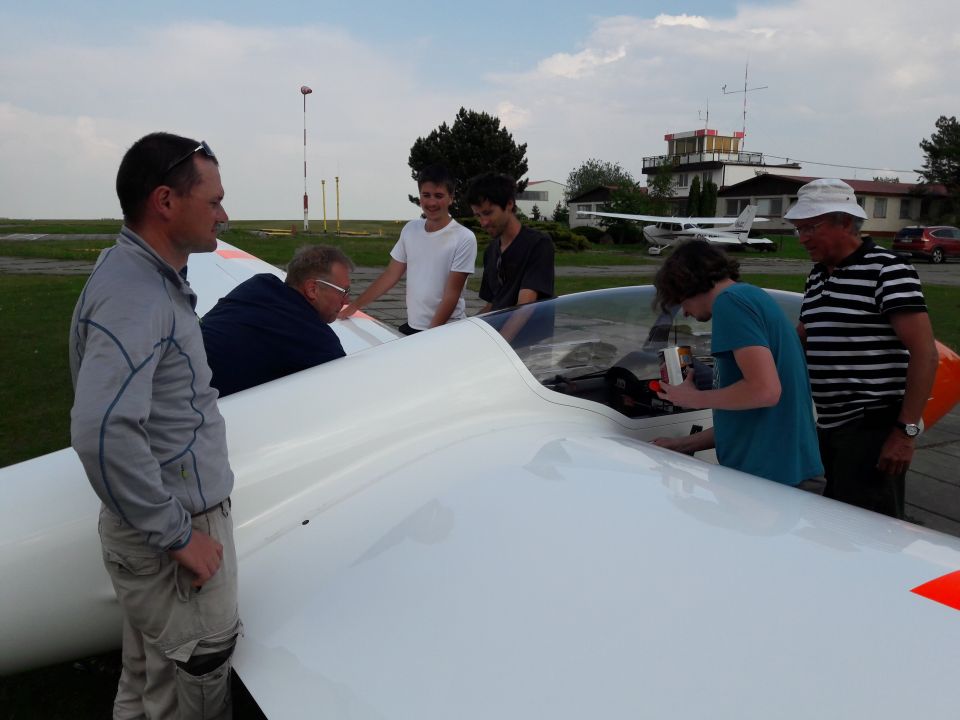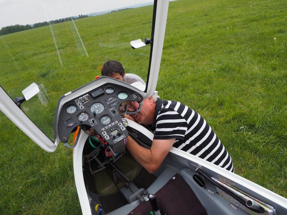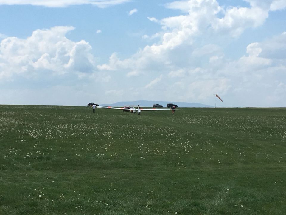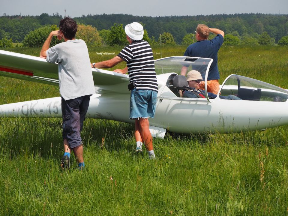 Ve středu se podmínky pro plachtění poněkud zhoršily, v krátkém intervalu mezi třetí a pátou se povedlo udělat 14 vleků, zůstalo ale jen u místního kroužení (a sedání a dalšího kroužení). Čtvrtek pak by se šesti starty jednoznačně nejméně úspěšných dnem celého soustředění. Takže jsme ani moc nezáviděli plachtařským kolegům z Innsbrucku, kteří se na dlouhý víkend vypravili do Hosína na minisoustředění – asi nám přivezli z Alp nějaké horší počasí.