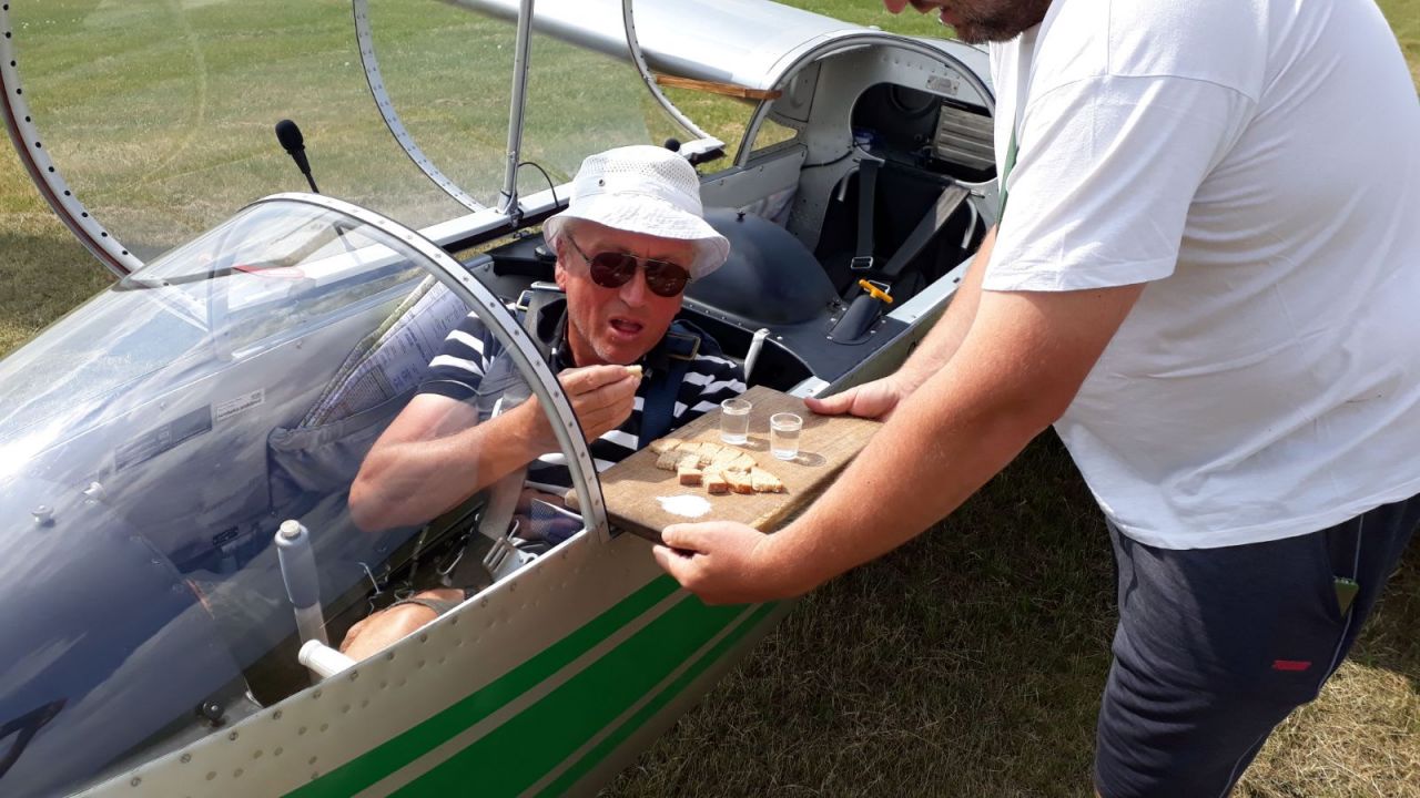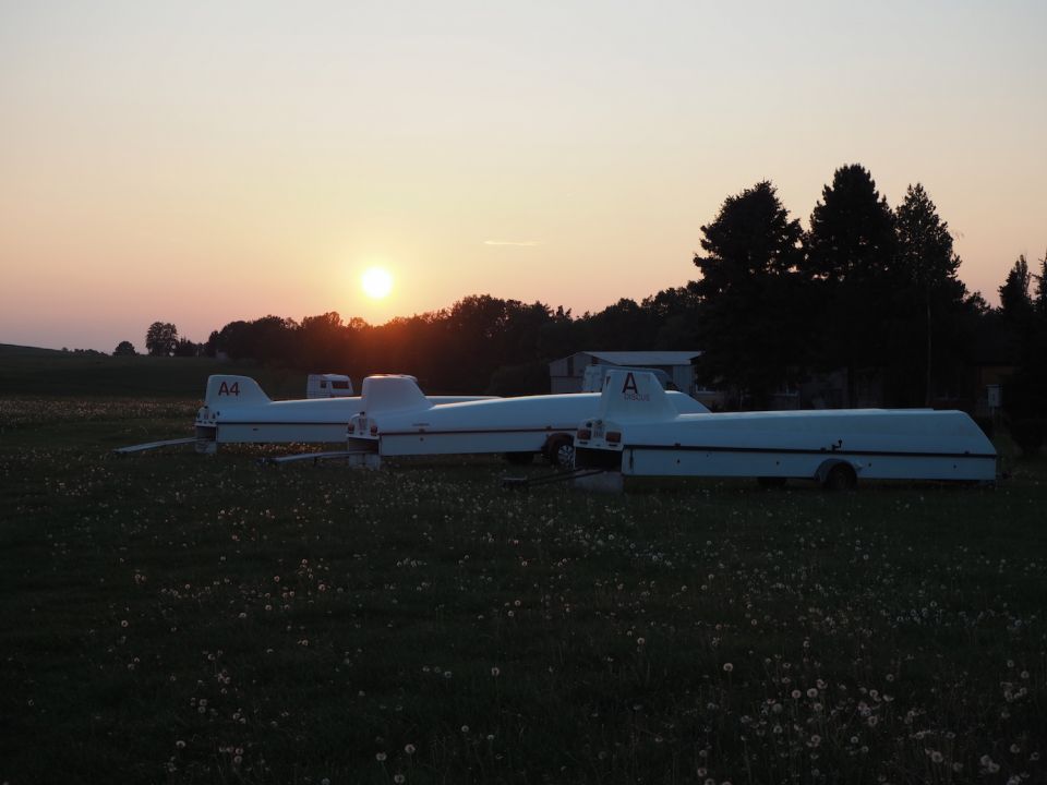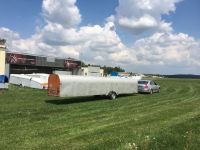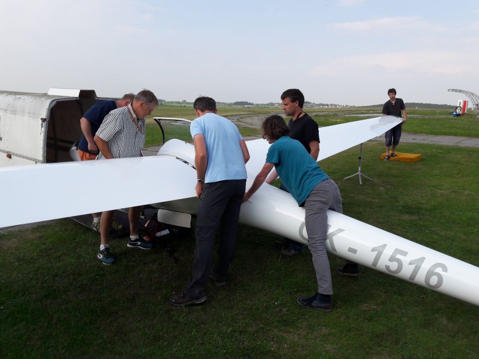 Sobotu pak už věnujeme výhradně přesunu. Transporťáky jsou sice připravené k odtažení už od včerejška, ale je třeba ještě sbalit kancelářské věci z provozní místnosti, zbytky z hangáru, tohle, tamto… Zkrátka a dobře v reálu se první větroně v přívěsech vydávají na cestu až k jedenácté, stejně jako vlečná s Blaníkem. Bubovice byly totiž ráno zakryty nízkou oblačností a na přistávání by nebylo vidět. Zatímco pro piloty připraví pozemní tým Kamil – Hodul na domovském letišti tradiční přivítání chlebem a solí, na řidiče po pozemním přesunu namísto toho čeká ještě skládání letadel. No a když už máme tu příležitost, tak taky mytí, leštění, promazání, luxování… Zkrátka a dobře, vrata hangáru zavíráme znovu téměř se západem slunce. Uff, konečně zase doma.