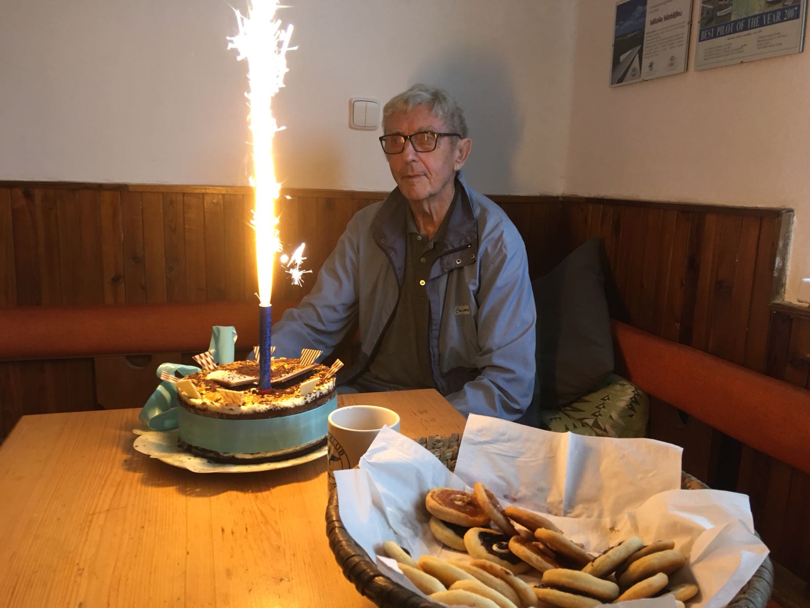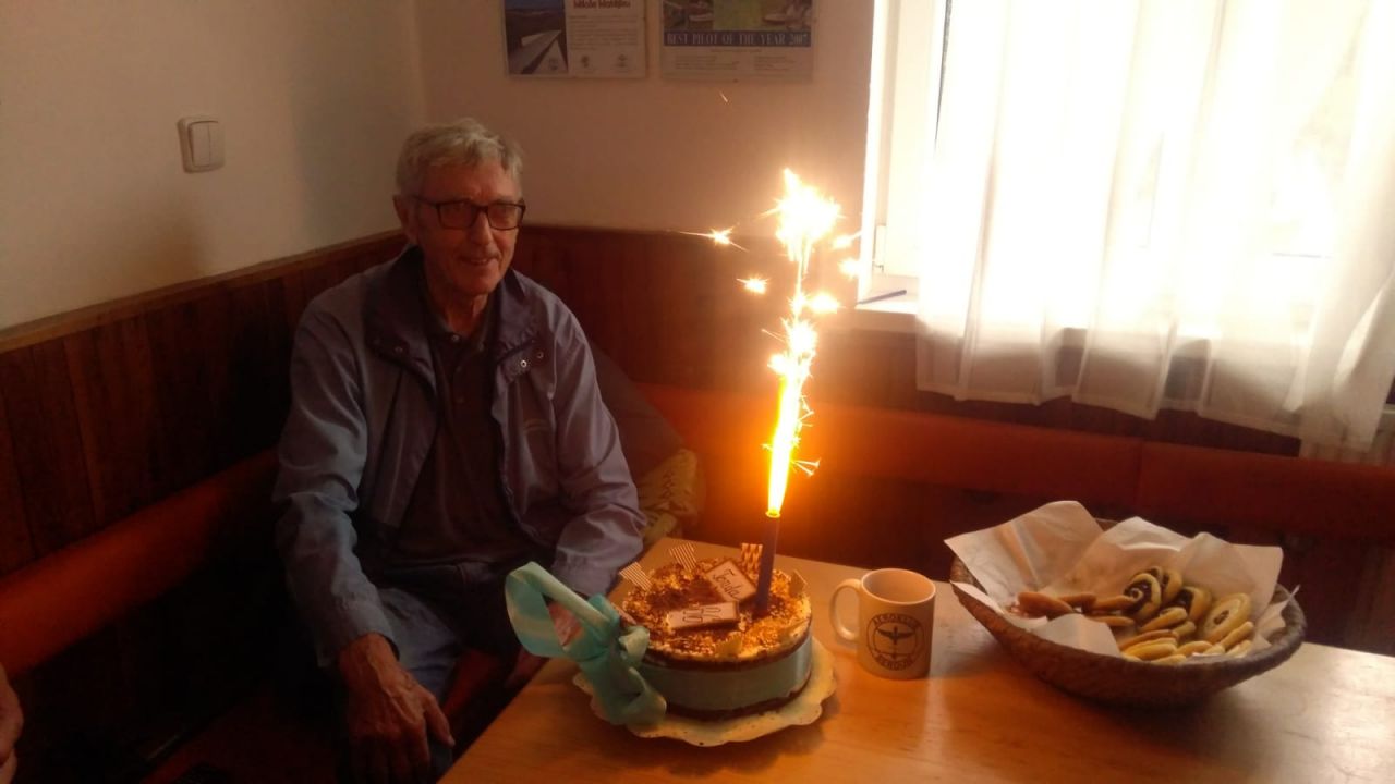 Celodenní mrholení sice v sobotu znemožnilo provoz. Aspoň jsme se ale po celý den mohli věnovat banketu! Narozeniny v tomto týdnu oslavil ak. arch. Antonín Kryl, dlouholetý člen AK Beroun, a dnes si přišel popovídat o svých zážitcích nejen z létání na bubovické letiště.