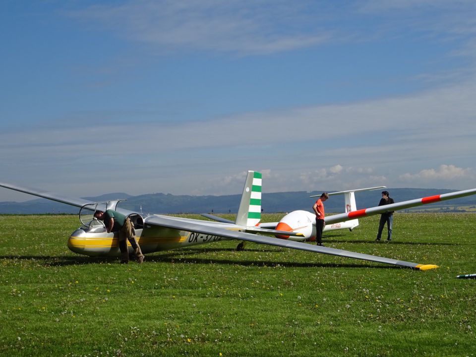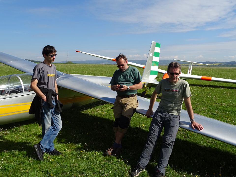 V sobotu se v průběhu dopoledne počasí na chvíli umoudřilo a bylo možné rychle vystěhovat hangár a uskutečnit pár pokusů. Pravdou ale je, že až na posádku Kuriščák - Hošek, která v prostoru kroužila přes dvě hodiny, se ostatním pilotům termicky moc nedařilo. Žádný div, že jsme odpoledne opět dali přednost kultuře a zamířili do Moravské Třebové, abychom si prohlédli renesanční náměstí, zámecké nádvoří a do hloubky pak točený nefiltr z Pivovaru Černá hora (mimochodem nic moc).