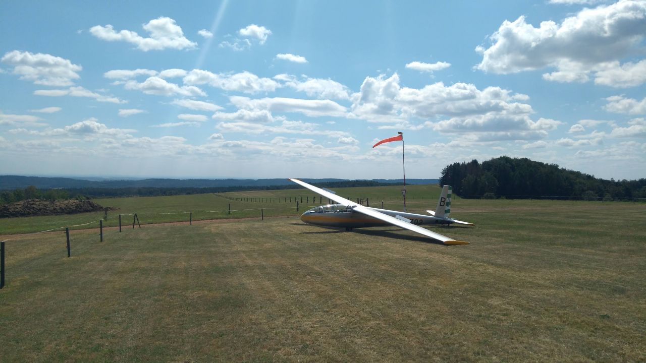 Ze Dvora nám ochotně vypravili vlečnou (silnou a těžkou Cessnu), protože plochu dobře znají a zjevně z ní často dělají převleky. Vzlet z plochy byl skutečně zážitek na celý život. Jednak proto, že jsme poprvé startovali za lanem na vlekání z pole, které je skutečně hodně krátké. Druhak proto, že majitele plochy nenapadl lepší nápad, než dát si větrný pytel na železnou tyč vystrčenou hodně blízko kraje dráhy, na který nás sfoukával boční vítr. Naštěstí místní věděli co dělají a naše obavy byly liché. Cessna nás utrhla do vzduchu ještě daleko před tyčí a my se mohli v klidu držet dál ke straně a bezpečně se vyhnout.