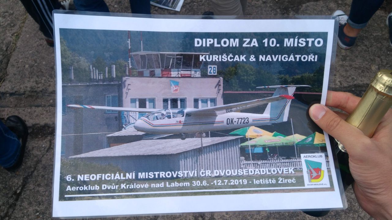 S Peťulínem spíme do 12 hodin dopoledne. Bratrskou pomoc se složením Blaníka nám ochotně poskytli náhodně kolemjdoucí plachtaři z Moravy. Večer je vyhlášení výsledků následováno gulášem. Cíle, které jsem si vytknul před závody byly splněny a překročeny! 1) přežil jsem, 2) nic jsem nerozbil a snad ani neztratil, 3) nejsme poslední! 4) neudělali jsme ostudu! Co víc si přát? Asi jen to, že tahle akce by se měla zase opakovat, optimálně s větším zapojením našich členů!