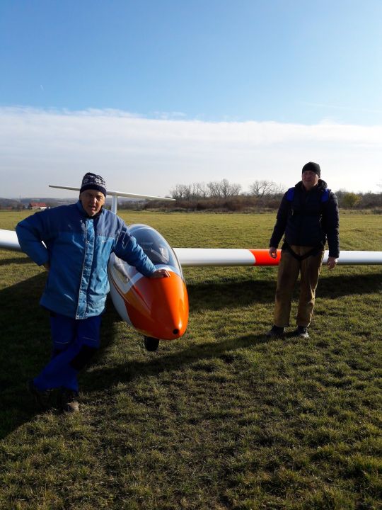 Podařilo se uskutečnit přes 20 navijákových startů a paralelně probíhal také provoz aerovleků. Čerství piloti Filip Vlasatý a Marek Smékal tak využili příležitosti a pod vedením šéfinstruktora Petra Hoduláka se přeškolili na ASK-21. Samozřejmě je pak oba čekala zasloužená odměna v podobě vhození do bazénu, a jejich statečnost při teplotě vzduchu 8°C (teplotu vody jsme neměřili) je třeba ocenit.