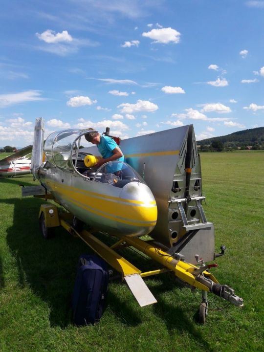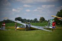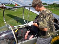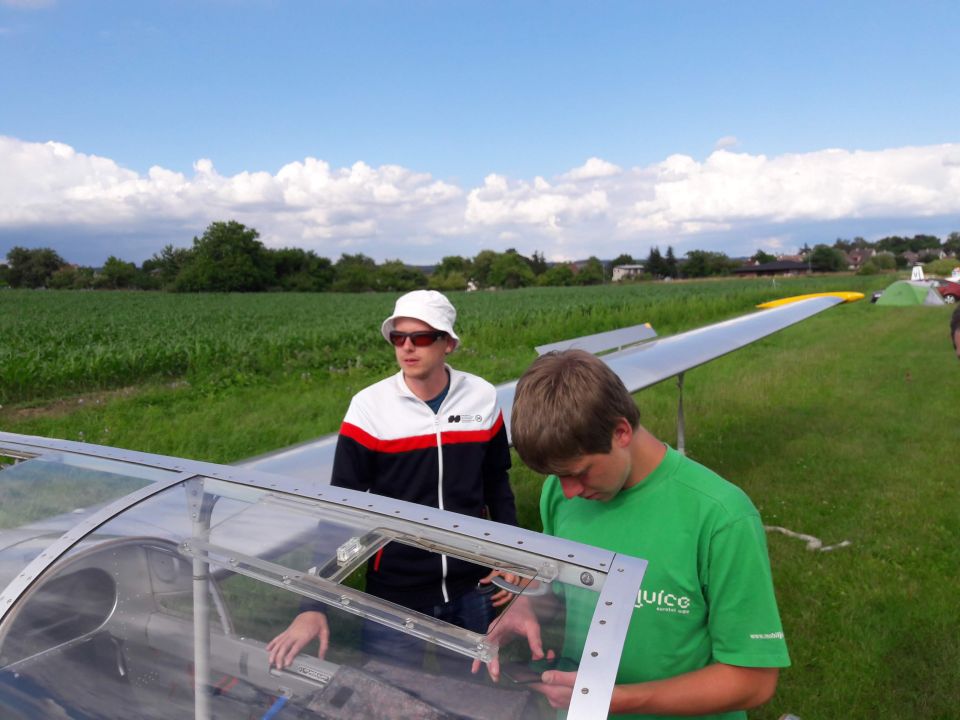 Čtvrtek se dokonce obejde zcela bez briefingu, den je prohlášen za neletový už ranní informační SMSkou. Možnost uletět dvě další platné disciplíny se tak kriticky omezuje na pátek a sobotu, o kterou by tím pádem musely být závody prodlouženy. Páteční ranní briefing ale jen zatluče hřebíček do rakve: silný vítr, srážky, mizivá využitelnost a odpoledne možnost bouřek, ve východních Čechách, kde právě jsme, dokonce i s krupobitím. Promýšlíme další strategii… Je jasné, že závody budou neplatné, a našemu Blaníku navíc dnes hrozí poškození kroupami. Diskutujeme tedy, jestli dáme přednost tomu letadlo na ploše dobře zabezpečit proti případné bouřce, nebo jestli ho raději úplně složit do transporťáku. Uprostřed debaty se k našemu týmu nakloní pan Příhoda, který tu létá se superblaníkem, a povídá: “Já vám prozradím svůj scénář. Jdu to rozebrat.” A tak se přidržíme příkladu zkušenějšího, letadlo v zájmu bezpečnosti rozmontujeme do Patranu, a když už ho máme tak pěkně složené, oželíme i pozvání na večerní party s řízečky, pivem a vyhlašováním vítězů a celý náš bleší cirkus přesuneme přes půl republiky zase zpátky do Bubovic. Transporťák i s letadlem s velkou úlevou zastrčíme do hangáru - Blaníkovi se naštěstí za celou dobu nic nestalo - zasedneme k večeři a zjišťujeme, že doma je doma a že se nám tady i na to zatracené počasí nadává o dost líp.