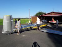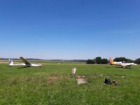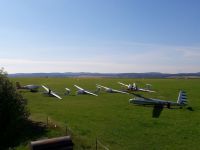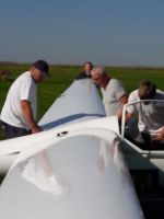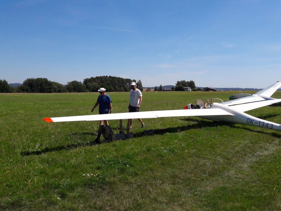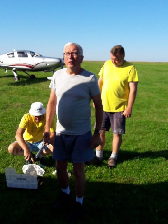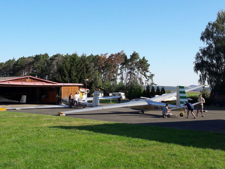 Už od osmi ráno kmitáme kolem hangáru, abychom dali dohromady rozložené Blaníky. Jde nám to o něco pomaleji než včerejší rozborka - je totiž známou věcí, že čím víc lidí letadlo skládá, tím pomaleji to jde, a nám pomáhá nejen včera přicestovavší Kamil Havelka, ale odbornou radou také dnes dorazivší Víťa Zárybnický. Po deváté ale máme flotilu připravenou ke startu a o půl jedenácté začínáme startovat.