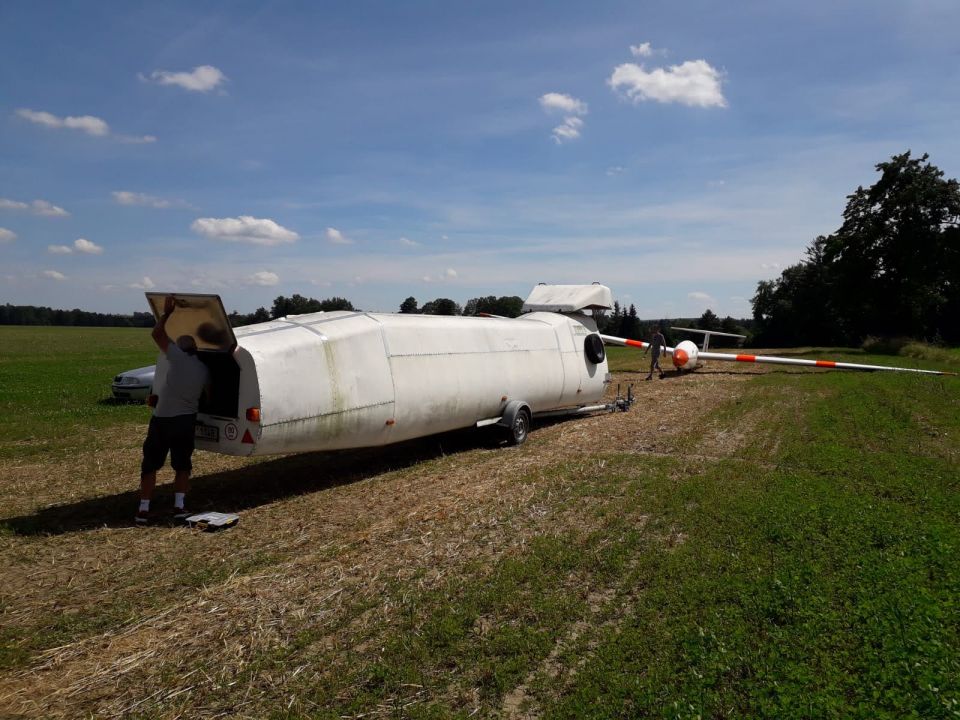 I když na pohled podmínky vypadají ideálně, v praxi to tak úplně není. Po hodině od startu se ASK hlásí z pole kousek za Smilovými Horami. To je naštěstí jen asi pětadvacet kilometrů daleko, hned po rychlém obědě se tedy pod vedením Kamila balí polní tým a míří tam. Posádka je evidentně v dobré náladě, protože Pavel se ještě mezi brázdami raduje, že jsou dnes s Petrem průběžně první na CPS! Ještě než k nim ale dorazí záchrana s transporťákem, už se po rádiu hlásí Filous s tím, že se pohybuje kdesi u Humpolce a počasí se mu tam krajně nelíbí, asi se vrátí domů. Zatímco je ASKčko skládáno do vleku, Filous dodává, že se mu počasí sice pořád nelíbí, ale ještě nesedí. A když ASK zamíří v transporťáku směrem k Vlašimi, Filous vítězoslavně reportuje, že Humpolec sice ještě pořád nemá rád, ale tamější pole už nevyhlíží a je na cestě domů, což kvitujeme s radostí.