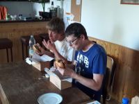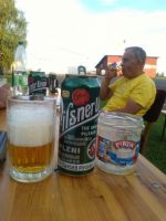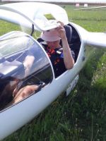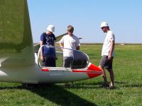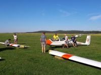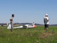 Po náročné středě ale plánujeme čtvrteční program jen velmi opatrně: Petr Novotný se dnes chce létání vzdát úplně, včerejší pětihodinovka se na něm zřejmě podepsala mírným úžehem. Ani Petr Lívanec se do letadla nijak nežene. Jen kamikaze-pilot Tomáš Fíla odvážně nadeklaruje stopadesátku, ale s poznámkou, že se do ní pustí jenom možná. Provoz tedy začneme přeškolením Peťulína a Pavla Kuriščáka na Cirrus. Pozemní přípravy už mají hotové, dnes je čeká kontrolní let s instruktorem Márou v ASK, a poté tři samostatné lety v Cirrusu. Ač jsou lety dle osnovy plánovány jako patnáctiminutové, klukům se ze vzduchu zpátky dolů moc nechce, počasí prý se začíná vyvíjet zatraceně příznivě a není čas ztrácet čas na zemi. To potvrdí i Honza, kterému přijedou na návštěvu rodiče a který vezme maminku na vyhlídku ASKčkem a krouží s ní nad Vlašimí dobrou třičtvrtěhodinu. Zatímco Pavel s Peťulínem se stále přeškolují (jejich seznamovací lety se protahují z patnácti minut k hodině), ostatní zvolna začínají mlsně pokukovat po zahálejícím letadlovém parku. Začíná samozřejmě Filous v Blaníku, a to krátce po poledni. Pak se ale přidávají Honza v L33, rozleží se to i Petrovi Novotnému, který naskočí do druhého Blaníku, Petra Lívance sice musíme ukecat, ale sedne si do ASK, a po přeškolení na Cirrus ho v pěstním souboji nad Peťulínem vyhraje Pavel Kuriščák a jde kroužit. Na zemi tak vlastně zůstané nevyužitá jen VSO10. Sice dnes vše létá jen místně, ale piloti si termické podmínky oproti včerejšku vyloženě pochvalují a na zem je vrátí až šestá večerní, kdy prostě vypnou termiku.