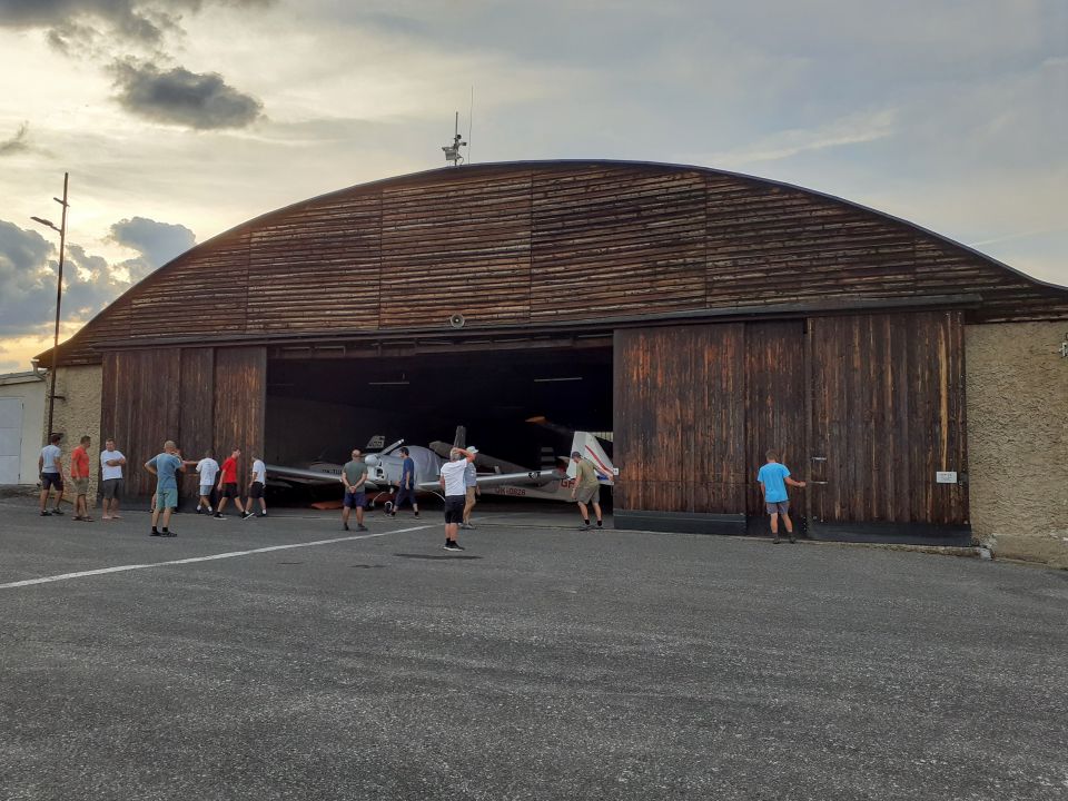Přesun jsme zahájili v sobotu transportem tranďáků, sudů s palivem a dalšího vybavení. Završili jsme ho pak převleky naší flotily v neděli. S místními podmínkami a letištní plochou jsme se seznámili samostudiem při krátkém místním polétání, večer si zahráli tetris v místním hangáru a pohovořili s místním předsedou.