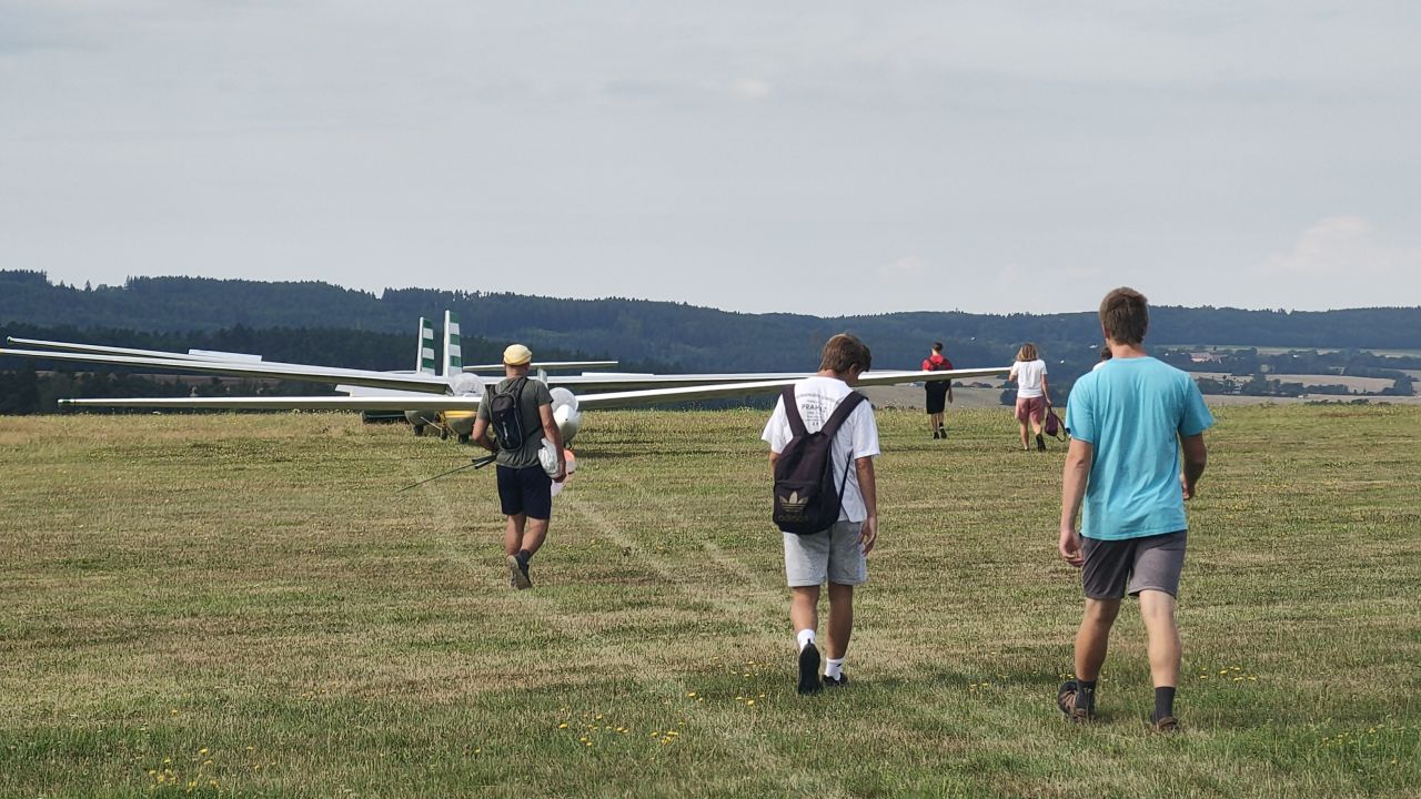 Neváháme a i přes hrozbu odpoledních přeháněk taháme celou naší flotilu na start. Pokračujeme v seznamování se s okolím. Probíhají další místní termické lety mladí se drží ve vzduchu, dokud je nedonutí přistát ony zmiňované přeháňky. "Vosa" mezitím podnikla rychlý výpadek na letiště v Erpužicích.