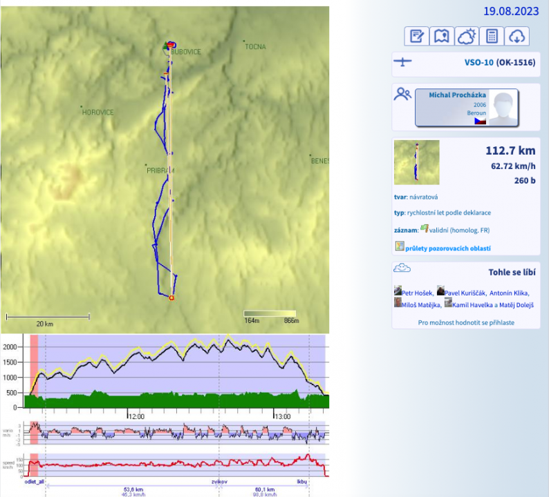 I když neměl Michal Procházka v sobotu 19. srpna ke svému výkonu zcela ideální podmínky, první přelet - Zvíkov s návratem - o délce 112,7 km zvládl bravurně. Odpolední koupel v bazénu pak už byla ve dvaatřicetistupňovém horku spíše za odměnu.