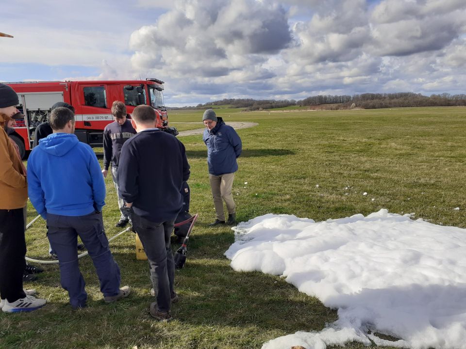 Součástí zimního školení byla nejen obvyklá témata, mezi která patří opakování zásad provozu na LKBU, rozbor leteckých nehod uplynulého roku, proces výcviku v rámci DTO AK Beroun nebo problematika bezpečnosti, ale v tomto roce také část věnovaná zásadám požárního zásahu, včetně praktických ukázek.