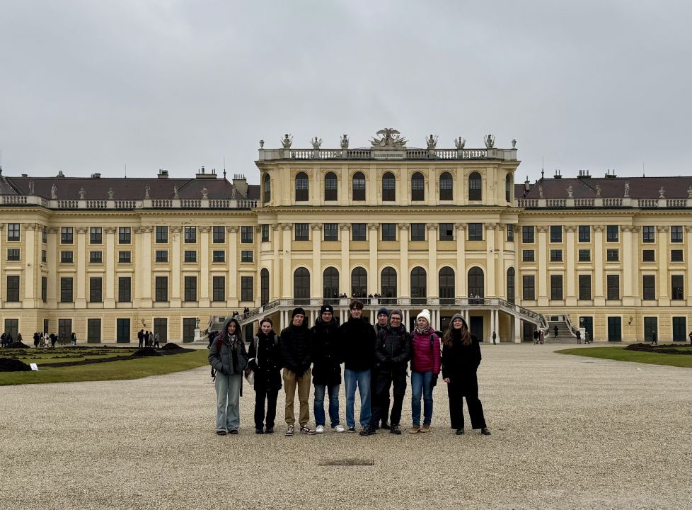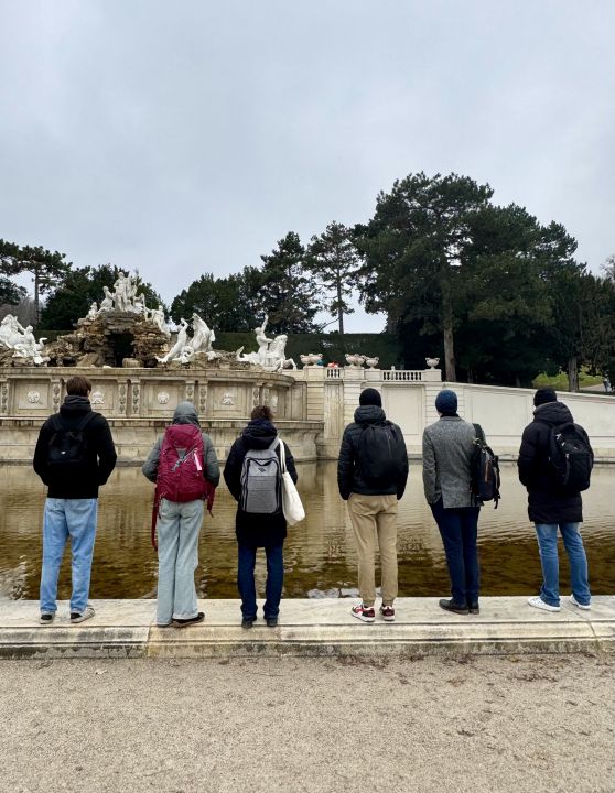 Druhý den jsme začali procházkou v zámeckých zahradách Schönbrunn. I když zima už trochu barvám ubrala, pořád to byla nádhera. Na chvíli jsme se zastavili a představili si, jak by se asi křtilo za první sólo v místní kašně; naštěstí to však zůstalo jen v naší fantazii.