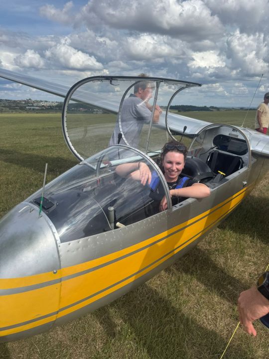 V sobotu 30. 8. 2025 si odbyla svůj první samostatný let Eliška Bínová - adeptka na pilotku, která nastoupila do plachtařského výcviku na jaře 2024.