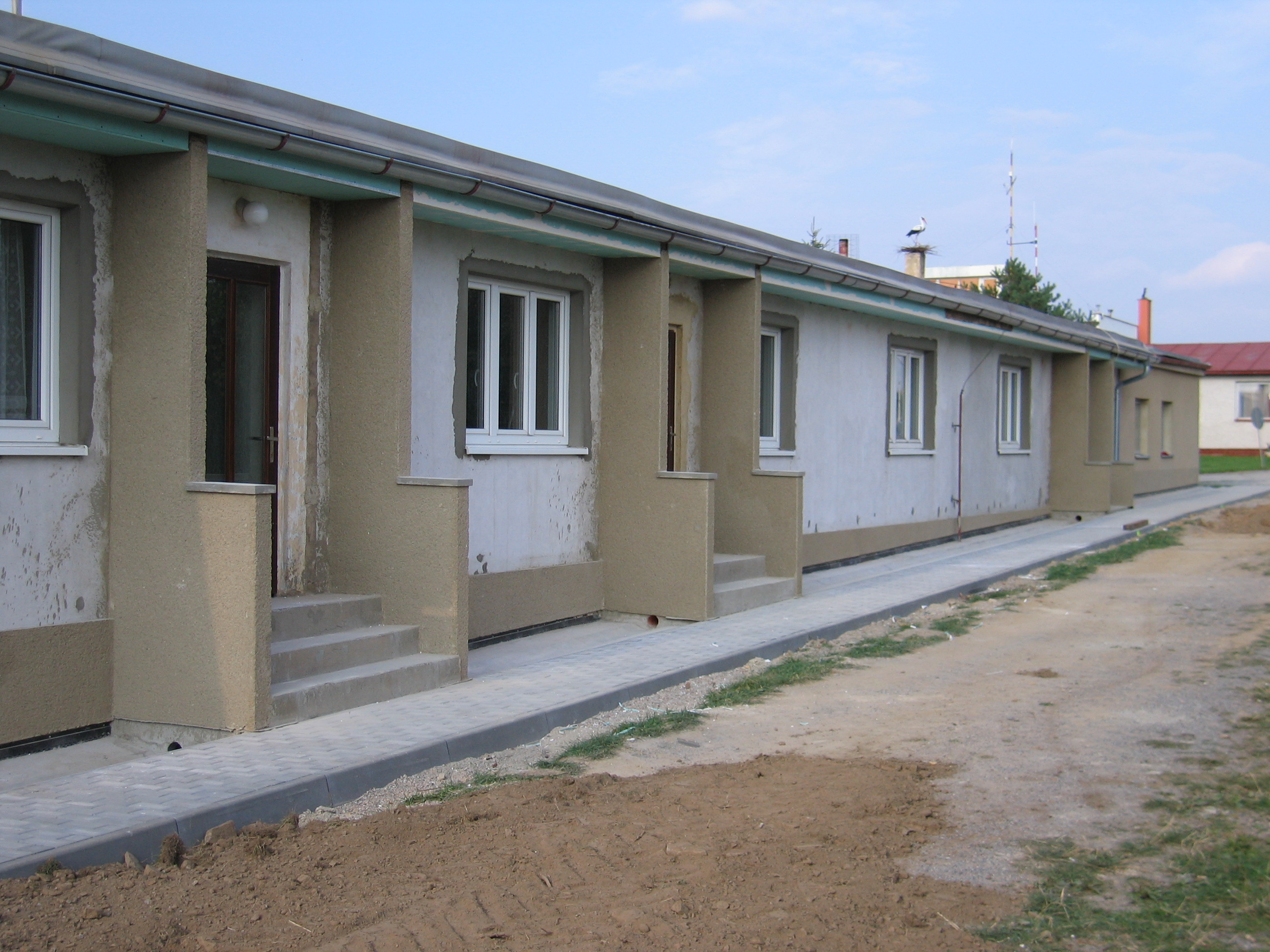Dokončili jsme opravu vnějších částí starých provozních budov a jeho nejbližšího okolí. Nové omítky, okna, vchodové dveře, chodník i venkovní posezení. A jak se to vše povedlo? Posuďte sami, ale hlavně: přijeďte se podívat!