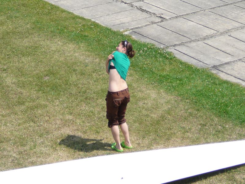 A právě proto si někteří z nás na protest a tak trochu rebelovsky v duchu PUNK hnutí proti Termoskovi nechali ostříhat pěknýho kohouta na hlavě. O co méně bylo přeletů o to více bylo navijáků. Navijáková skupina nadšenců sedala ve vysokých teplotách nad 30 stupňů Celestýna do rozžhaveného kokpitu kluzáku Blaník L13 tak samozřejmě, jako by bylo příjemných 20 stupňů. Každý pilot při startu musel přiložit ruku na hlavu s rozevřenou dlaní a napnutými prsty vzhůru, aby zdůraznil číro jako soudržnost s Letkou pankáčů.
